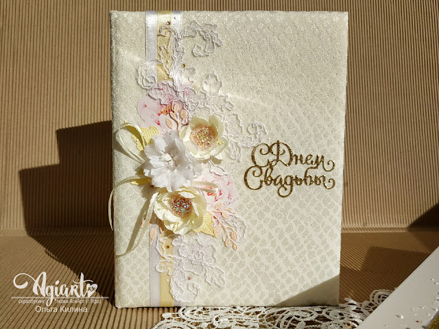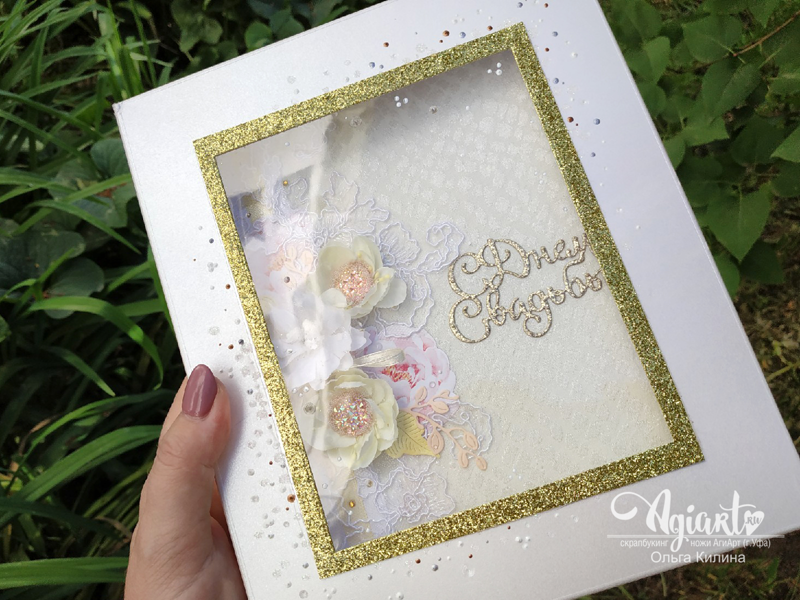 Задействованы перламутровый и глиттерный картон, гипюр и вырезки из скрап-бумаги.